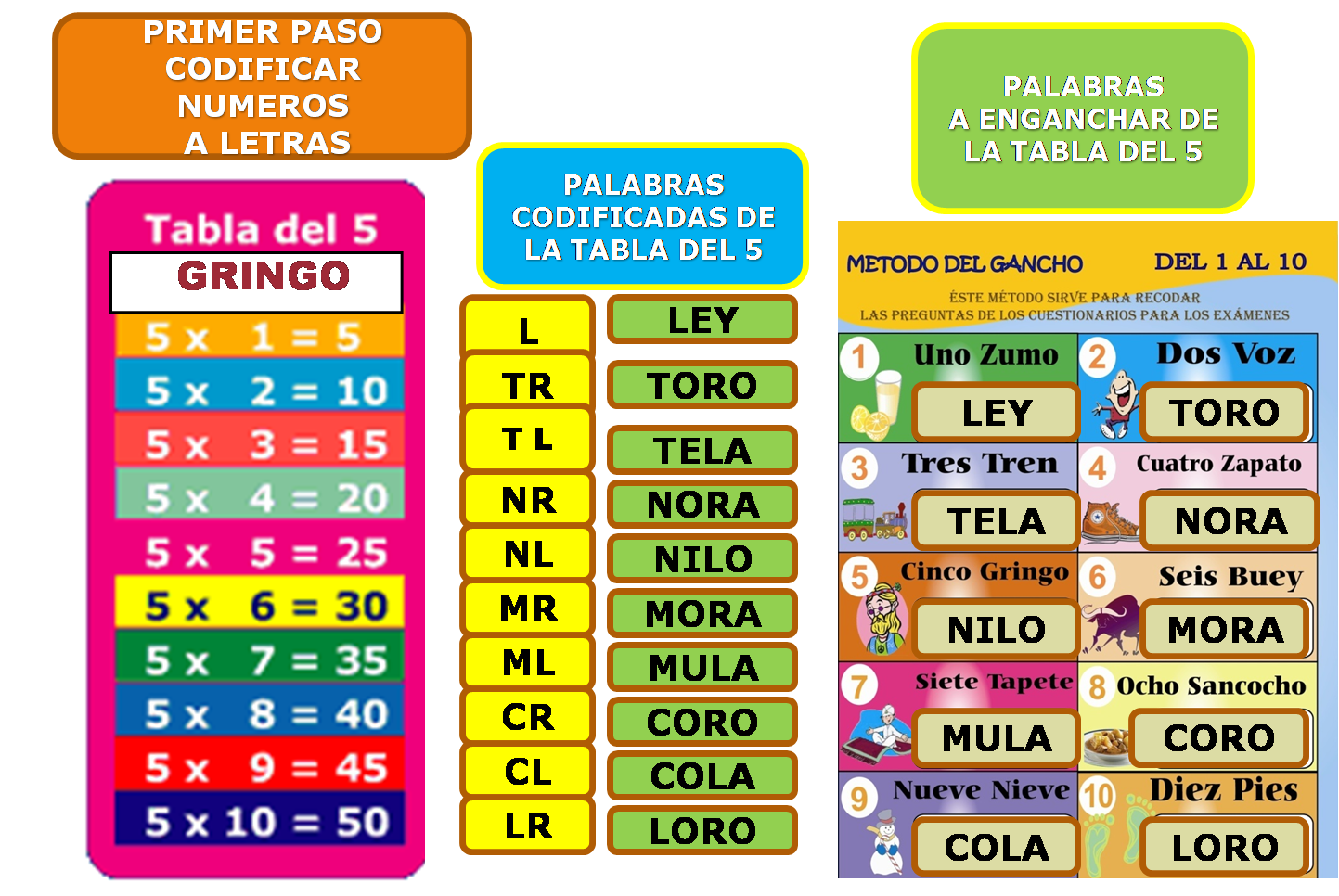 Se recomienda también la imaginación de estos números y su evocación mental en la palabra que hemos formada con las consonantes.